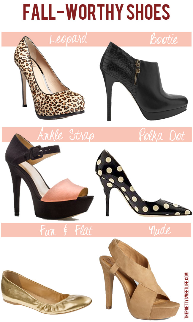 Leopard: Pour la Victoire Leopard Pumps (currently on sale for just $85!) | Bootie: MICHAEL Michael Kors York Bootie | Ankle Strap: Zara Tri-Colour Sandal | Kate Spade New York Licorice Polka Dot Pumps | Fun & Flat: J. Crew Cece Metallic Gold Ballet Flat | Nude: DVF Zia Platform Shoes (currently on sale for just $143!)