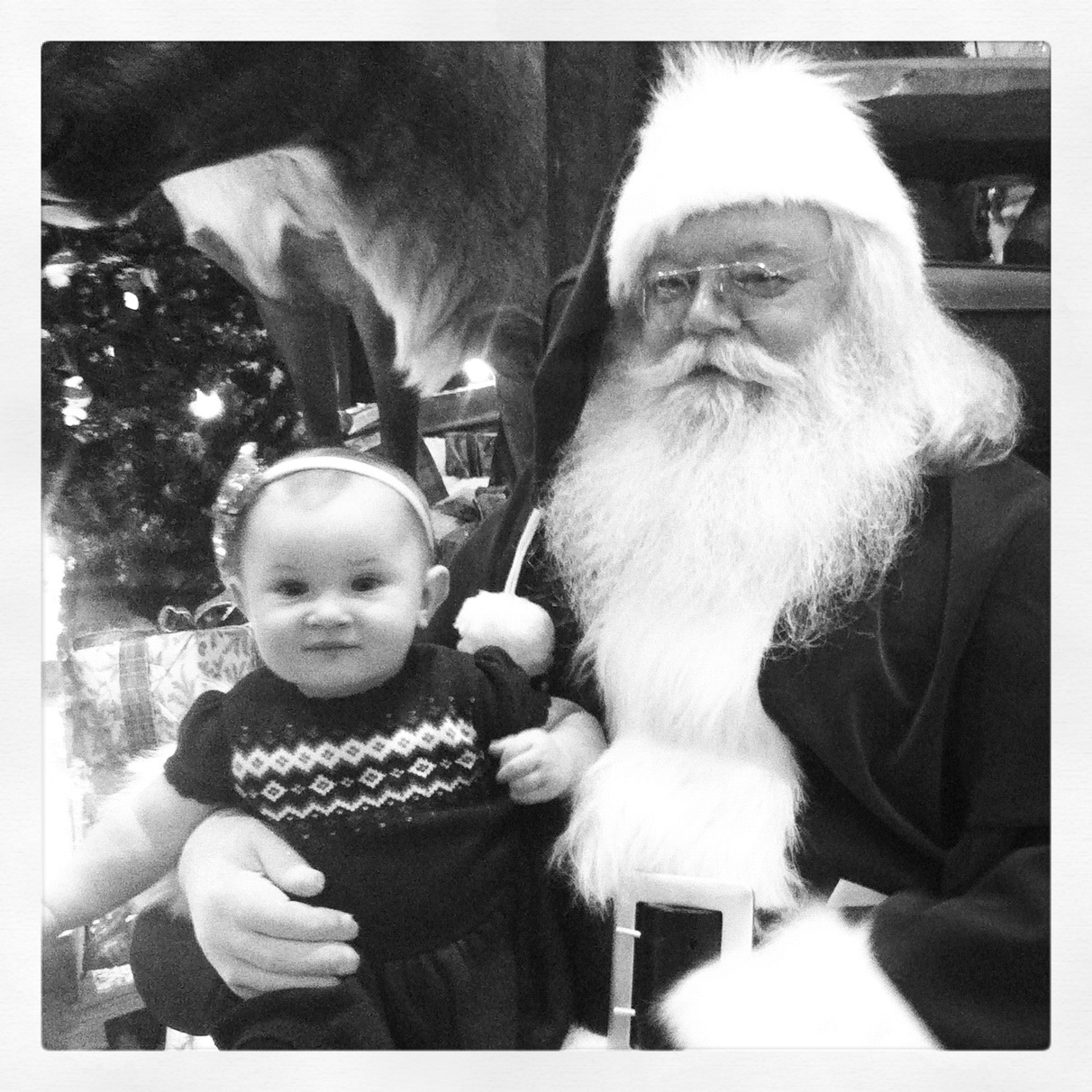 So glad she wasn’t traumatized for life or anything too dramatic. I think I was expecting the worst. It may have had something to do with the fact that one of the few Santas around is at our local Bass Pro Shop, which also meant “North Pole” additions like a giant taxidermized moose. (that vocab addition thanks to this video, if you haven’t seen it.) She may be an outdoors lover like her dad after all, although hopefully, she will have better taste in prints than camouflage.